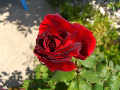 Imac, Akelamalu, Sarge Charlie, John, Peppylady, and Anna Sue – Thanks to each of you for visiting and sharing your reactions today! Yes … this rose in growing my front yard. Its color is such a deep red, some of the petals look like black velvet!